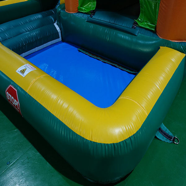 Dura Lite inflatables are constructed from 15oz mixed with 9 oz Light n StrongTM PVC Vinyl with additional vinyl reinforcement sewn in at all stress points to allow for maximum strength, durability and most importantly, safety. All seams have been double or quadruple-threaded and heat-welded for superior durability and these measures also prevent dirt and sand from damaging the seams, thus prolonging the life of your inflatable and minimizing repairs. Our bounce houses are designed with children's safety at heart, featuring finger-safe netting and safety ramp entrance that promotes more safe entry and exiting from the unit. The unit has commercial-grade webbing and Velcro throughout and zippers for easy deflation when it's time to pack up at the end of the day.